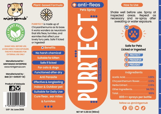 Purrtect Anti-Fleas Pets Spray Anti Parasitic
